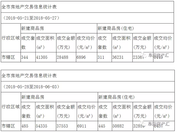 据阜阳市房地产管理局最新发布信息,公布了6月4日-6月10日(6月第二周),阜阳市房地产市场的交易状况,阜阳市辖区商品房销售共485套,销售总面积为54335㎡,销售均价为6911元/㎡,总销售金额约为375510万元。其中阜阳市辖区新建商品房(住宅)销售445套,销售面积为50882㎡,销售均价为6457元/㎡,总销售金额32859万元。