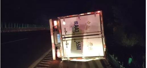 昨晚,在滁新高速阜阳段,一辆货车出现侧翻事故。幸好事故发生在深夜,来往车辆不多,才没有造成更大的交通事故。9月4日晚23:20分左右,阜阳市高速交警二大队接到报警:一辆运送冷冻食品的货车在S12滁新高
