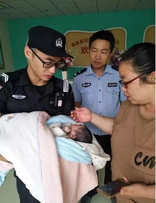 2018年6月22日早上,临泉县公安局于寨派出所接到群众报警,一名婴儿被遗弃在路边。 民警立即赶到现场,发现几名群众围在临泉县城关街道办迎新居委会门口,民警上前,发现地上放着一个小被子,包裹
