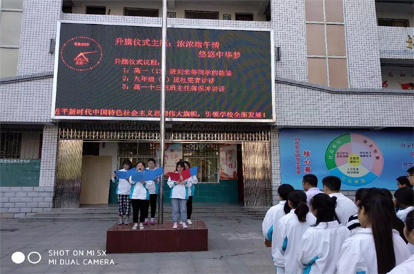 端午节和“中考”同步临近,6月11日早晨,阜阳四中在校园广场举行了以“迎中考”、“端午情”升旗仪式,阜阳四中校长刘杰及全体师生参加了升旗活动。高一(13)班学生代表刘米等同学做了题为“端午感怀”的诗朗