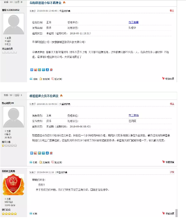 自从电动“小绿”进驻阜阳,确实方便了很多市民出行,不过,最近有不少网友反映阜阳帮提提电动车不给退押金,甚至将押金转为了余额.小编查询发现早在去年6月份,就有人投诉帮提提退款有问题.当时,阜阳市工商局给